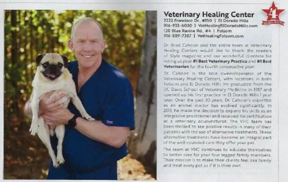 Dr. Brad and the entire team at Veterinary Healing Centers would like to thank all of our wonderful clients and STYLE magazine for voting us the #1 Best Veterinarian and #1 Best Veterinary Practice in Folsom in El Dorado Hills. It is our privilege to care for your furry family members, and we look forward to seeing you soon!